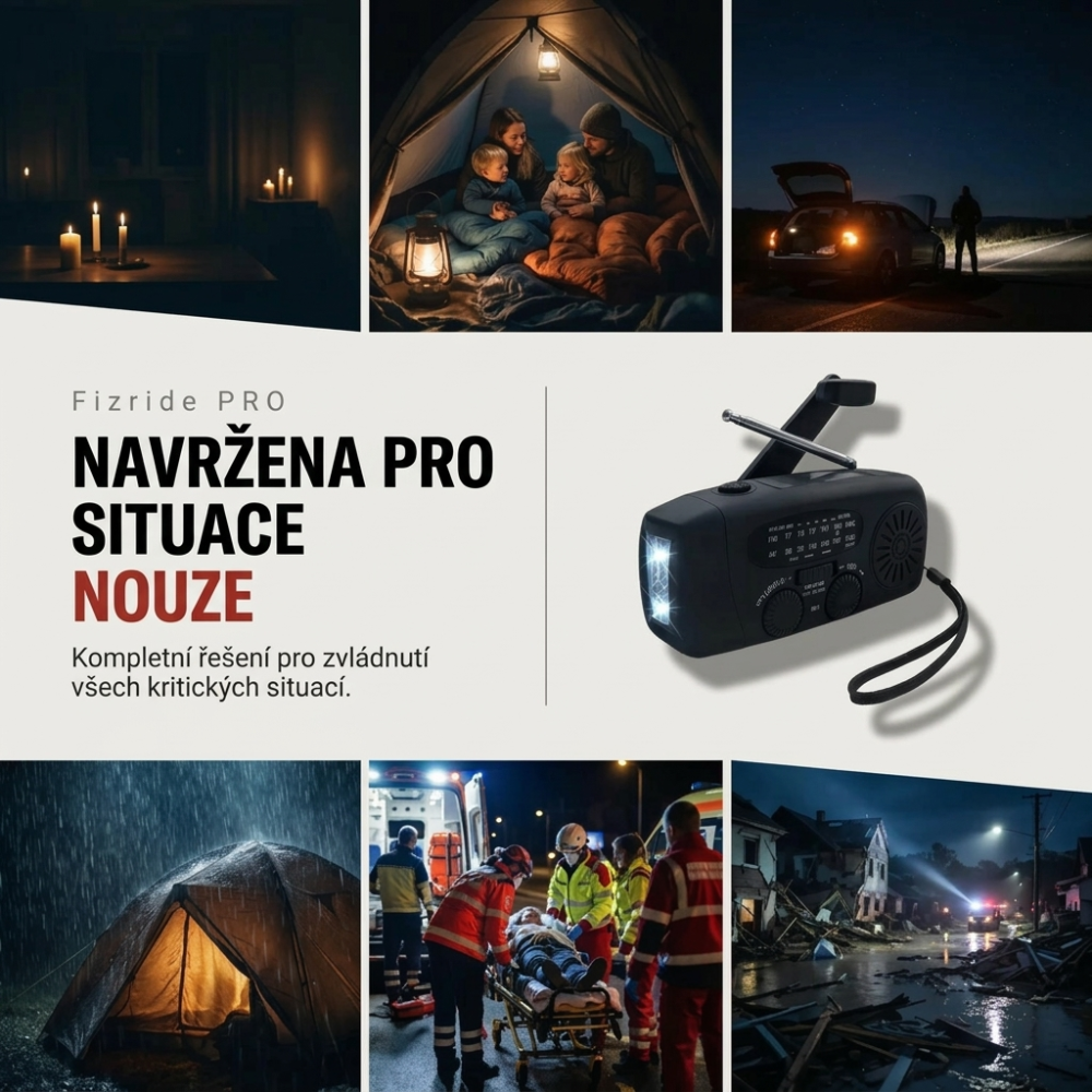 Fizride PRO™ spojuje praktičnost, výkon a spolehlivost v kompaktním zařízení. Ať už jste na kempování, túře nebo čelíte nouzové situaci, toto multifunkční rádio vám umožní zůstat informováni díky příjmu rádia, nabíjet vaše zařízení díky různým možnostem nabíjení a zajistit vaši bezpečnost díky integrované funkci SOS a LED svítilně.